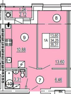 Общая площадь: 34.3 кв.м