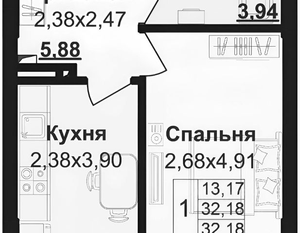 - Кухня-гостиная 17,8 м2, с двумя панорамными окнами;