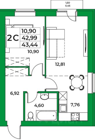 Площадь: 53 м² (без учета лоджии, с лоджией 56.46 квм)