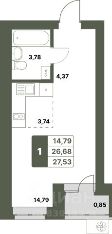 Продается 1-к-комнатная квартира в ЖК "Свой Берег" от ГК "Архстрой Групп". 5-й этаж 8-этажного жилого дома, общая площадь 27.53 кв.м., жилая площадь 14.79 кв.м. Отделка получистовая.