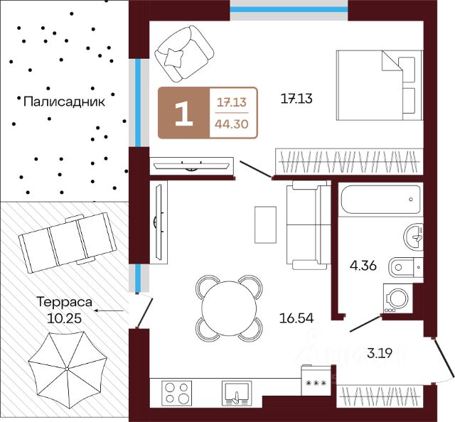 Жилая площадь 23.28 кв. м. от ГК "Первый Трест".
