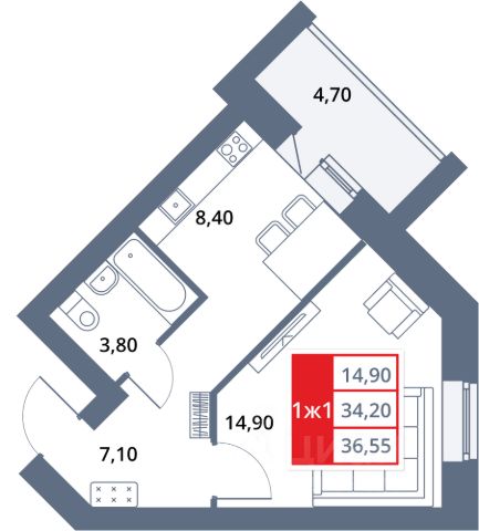 • ✅ Минимальная площадь: 34,9 м²