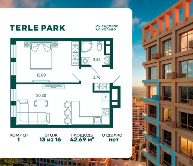 Продается квартира в ЖК Terle Park с 1 спальней на 13 этаже 18 этажного дома. Общая площадь: 46.16 кв.м. Высота потолков 3.1 м. Срок сдачи 3 квартал 2026 г. Вид на лес. Вид на реку. Эскроу-счет. Застройщик ГК "Садовое кольцо". -Расположение Terle Park расположен на улице Авроры, в экологически чистом районе "Зелёная роща", на границе с лесопарком, который огибает река Уфа. Здесь можно наслаждаться чистым воздухом пригородной зоны, оставаясь в городской черте, с быстрым доступом к основным магистралям Уфы и удобной транспортной инфраструктурой. -Инфраструктура Комплекс расположен в шаговой доступности от ключевых образовательных учреждений: детский сад 24, лицей 5, школа 119. Практически через дорогу — станция скорой помощи, кардиологический центр, Республиканская детская больница и Республиканский перинатальный центр, что обеспечивает быстрый доступ к медицинской помощи. -Архитектура Шесть корпусов переменной этажности (от 10 до 29 этажей) гармонично вписываются в природный ландшафт района Зелёной рощи". Каждый корпус имеет индивидуальное оформление, подчеркивающее уникальность и современность комплекса. Дома возводятся по кирпично-монолитной технологии с навесным фасадом, что обеспечивает долговечность и эстетическую привлекательность. -Внутренний двор Внутренняя территория представляет собой уютный парк для жителей, где всё продумано до мелочей. Закрытый двор без машин обеспечивает безопасность и уют. Пространство разделено на различные зоны для отдыха: от прогулочных маршрутов и лаунж-зон, до террас для йоги и медитаций. Для общения и ярких событий будет обустроена событийная площадь. Для любителей спорта на территории предусмотрены воркаут зона, настольный теннис и многофункциональная площадка для игр. -Входные группы Подъезды расположены на уровне земли — удобно для колясок, велосипедов и самокатов. Лобби в светлой палитре с зелёными и оранжевыми акцентами дополняет рабочая зона для встреч и онлайн-конференций. В домах предусмотрены современные бесшумные лифты.