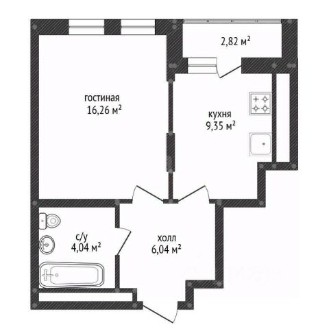 Параметры: Общая площадь - 30,7 кв.м., жилая 18,6 кв.м., кухня - 6 кв.м.