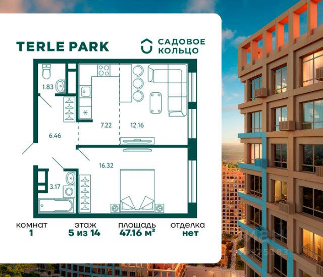 Продается квартира в ЖК Terle Park с 1 спальней на 5 этаже 10 этажного дома. Общая площадь: 46.26 кв.м. Высота потолков 2.95 м. Срок сдачи 4 квартал 2025 г. Вид на лес. Эскроу-счет. Застройщик ГК "Садовое кольцо". Расположение Terle Park расположен на улице Авроры, в экологически чистом районе "Зелёная роща", на границе с лесопарком, который огибает река Уфа. Здесь можно наслаждаться чистым воздухом пригородной зоны, оставаясь в городской черте, с быстрым доступом к основным магистралям Уфы и удобной транспортной инфраструктурой. Инфраструктура Комплекс расположен в шаговой доступности от ключевых образовательных учреждений: детский сад 24, лицей 5, школа 119. Практически через дорогу — станция скорой помощи, кардиологический центр, Республиканская детская больница и Республиканский перинатальный центр, что обеспечивает быстрый доступ к медицинской помощи. Архитектура Шесть корпусов переменной этажности (от 10 до 29 этажей) гармонично вписываются в природный ландшафт района Зелёной рощи". Каждый корпус имеет индивидуальное оформление, подчеркивающее уникальность и современность комплекса. Дома возводятся по кирпично-монолитной технологии с навесным фасадом, что обеспечивает долговечность и эстетическую привлекательность. Внутренний двор Внутренняя территория представляет собой уютный парк для жителей, где всё продумано до мелочей. Закрытый двор без машин обеспечивает безопасность и уют. Пространство разделено на различные зоны для отдыха: от прогулочных маршрутов и лаунж-зон, до террас для йоги и медитаций. Для общения и ярких событий будет обустроена событийная площадь. Для любителей спорта на территории предусмотрены воркаут зона, настольный теннис и многофункциональная площадка для игр. Входные группы Подъезды расположены на уровне земли — удобно для колясок, велосипедов и самокатов. Лобби в светлой палитре с зелёными и оранжевыми акцентами дополняет рабочая зона для встреч и онлайн-конференций. В домах предусмотрены современные бесшумные лифты.