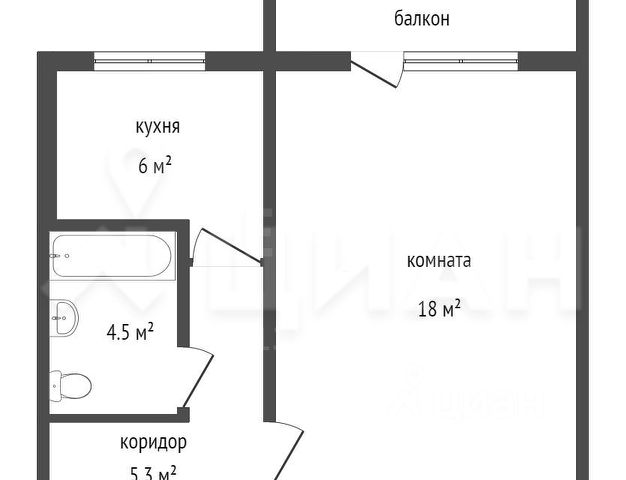 Общая площадь квартиры 60 кв.м.