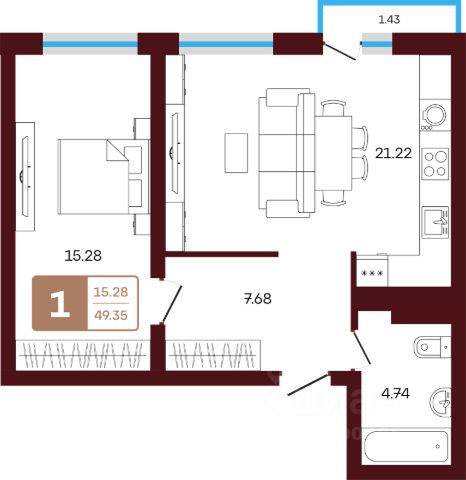 Продаётся 1-комнатная квартира в строящемся доме (литер 1), срок сдачи: III-кв. 2026, общей площадью 41.48 кв.м., на 3 этаже. Новый жилой комплекс "ЯРАТАУ" от застройщика "СЗ НВ - 1" расположен по адресу Россия, Республика Башкортостан, Иглинский район, село Акбердино, Газпромовская улица.