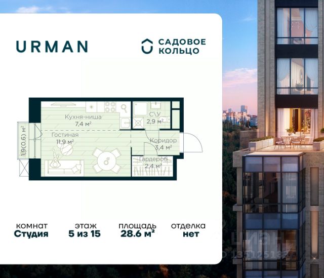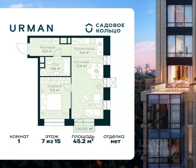Успейте забронировать по акционной цене! Стоимость квартиры указана со скидкой, ваша выгода составит 461825 рублей. Предложение ограничено. Звоните, чтобы узнать подробнее! Продается квартира в ЖК Urman City с 1 спальней на 30 этаже 30 этажного дома. Общая площадь: 40.84 кв.м. Высота потолков 3.4 м. Срок сдачи 2 квартал 2026 г. Вид во двор. Эскроу-счет. Застройщик ГК "Садовое кольцо". -Расположение Urman расположен прямо в сердце лесного массива. Прогулка по благоустроенным лесным тропам или 10 мин езды до центра города — выбор за вами. Собственная дорога через лес обеспечивает приватность и тишину, защищая от городского шума. -Инфраструктура Urman предлагает разнообразную собственную инфраструктуру: спортивные зоны, детские площадки, кафе и уютные общественные пространства. Планировки квартир продуманы до мелочей, обеспечивая комфорт и функциональность. -Архитектура Неоклассические пропорции, игра стекол и оттенков кирпича, вдохновленная североевропейскими мотивами, создают уникальный облик комплекса. Разновысотные корпуса открывают впечатляющие виды на лес и реку, делая каждый дом по-настоящему особенным. -Внутренний двор Закрытый трехуровневый двор впечатляет гармонией и уютом. Продуманный ландшафт и связь с окружающим лесом создают идеальное пространство для отдыха, прогулок и семейного времяпрепровождения. -Входные группы Входные группы оформлены элегантно и продуманно. Акцентные элементы, ландшафтные композиции и представительская зона в стиле эко-лофт создают эффект "портала" в приватный мир комплекса.