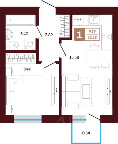• ✅ Минимальная площадь: 33 м²
