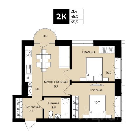 Жилая площадь 34.39 кв. м. от ГК "Первый Трест".
