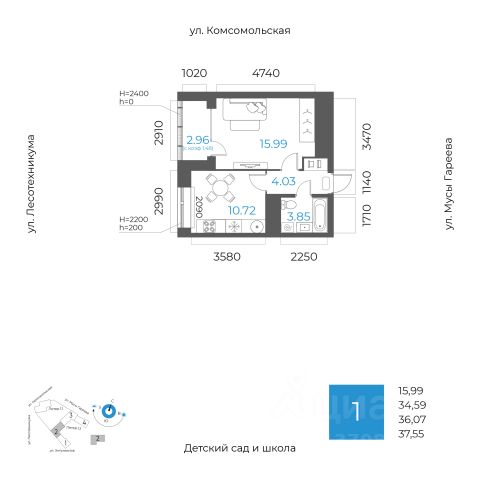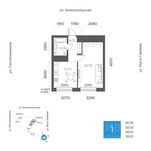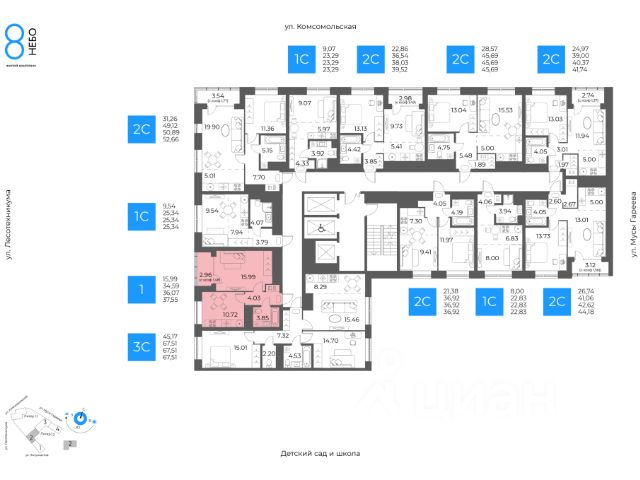 1-к квартира в 8 НЕБО; По адресу: Литер 1.2, Секция 3. 18-й этаж 24- этажного жилого дома Общая площадь 22.52кв.м.; Жилая площадь 7.70 кв. м. от ГК "Первый Трест". Срок окончания строительства: 3 квартал 2027 года. Квартира с свободной планировкой, позволяющей реализовать любые дизайнерские решения: - Стены выровнены и оштукатурены, готовые под финишную отделку по вашему вкусу. - Пол: выполнена стяжка, обеспечивающая ровное основание для любых напольных покрытий. - Электрика: разводка выполнена до щитка, что обеспечивает безопасность и удобство при дальнейшем монтаже. - Отопление: установлены радиаторы и выполнена полная разводка системы отопления. - Водоснабжение: выведены коммуникации под воду, готовые для установки сантехнического оборудования. ЖК 8 Небо - это восемь домов в самом современном районе столицы. Вы попадаете в уютное, но при этом динамичное пространство, открытое солнечным лучам. Здесь вы найдете для счастья всё, вне зависимости от того, что вкладываете в это понятие. - Счастье, когда всё рядом. Открытая прогулочная улица на территории комплекса, крупнейший торговый центр в 10 минутах ходьбы, прямой доступ к ключевым транспортным магистралям города - Счастье в эстетике. 8 разновысотных зданий, созданных при участии шведских архитекторов. - Счастье в красоте, функциональности и безопасности. Просторные дизайнерские холлы с уникальным дизайном для - Счастье в благоустроенной территории. Многоярусный внутренний двор с разнообразными зонами озеленения и общественными пространствами. - Счастье жить с единомышленниками. Соседский центр - уютное пространство для отдыха и площадка для воплощения идей, доступ к которой будет у всех жителей комплекса. Архитектура ЖК 8 Небо создан при участии шведских архитекторов, которые привнесли в проект элементы скандинавской культуры. Разновысотные здания выполнены из экологически-безопасных материалов. Базовая отделка фасадов: декоративная плитка с имитацией кирпича, фиброцементные панели и витражи из алюминиевого сплава. Всё это соответствует скандинавскому стилю, сочетая минимализм и эстетику. Паркинг Жилой комплекс оборудован просторным и безопасным подземным паркингом с системой бесконтактного доступа по номеру автомобиля. Изнутри же попасть в него можно просто спустившись на лифте с любого этажа. Благоустройство Открытый квартал для прогулок наполнит район необходимыми элементами приятной и комфортной жизни: эстетичные арт-объекты, облагороженная зона отдыха, магазины, рестораны, студии развития и творчества, салоны красоты. А закрытая территория, доступная только владельцам квартир жилого комплекса и их гостям, обеспечит уединение и безопасность. Весело и с пользой провести время теперь можно не выходя за пределы своего жилого комплекса. Инфраструктура в радиусе километра Школы - Собственная школа на территории комплекса - МАОУ Школа 88 - Школа 97 им. Г.А. Ахмерова - Лицей 6 им. Сафина Н.Д. - Лицей 42 - Школа Алгоритми