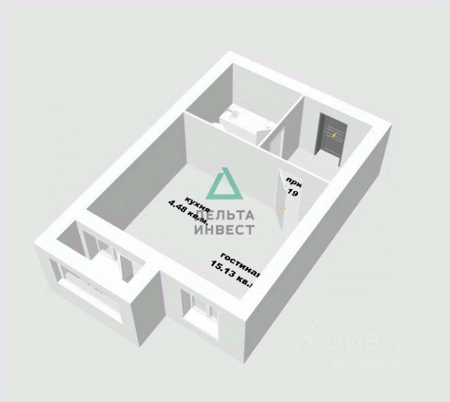 Квартира с оригинальной планировкой! Площадь общая 32,6 кв.м.: при входе небольшая лестница ведет вниз, далее прямоугольная прихожая холл 7,1 кв.м., справа есть Бьюти зона (можно использовать в коммерческих целях), прямо просторная Кухня Гостиная 11 кв.м. (делится на зону кухни и столовую зону), есть совмещенный санузел 3,8 кв.м, далее есть прход в отдельную спальню 7,6 кв.м. Окна смотрят во двор в направлении Дуванский Бульвар на Юг.