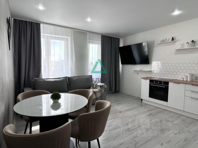 В кухне-гостиной: кухонный гарнитур, электро плита, столовая группа, встроенный шкаф-купе, телевизор, угловой диван, холодильник; в спальне: диван; в коридоре: зеркало с подсветкой; в санузле: стиральная машина и все элементы сантехники; по всей квартире: светильники и люстры во всех комнатах, шторы и карнизы.