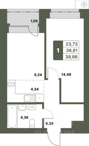 Продается 1-к-комнатная квартира в ЖК "Свой Берег" от ГК "Архстрой Групп". 6-й этаж 12-этажного жилого дома, общая площадь 39.86 кв.м., жилая площадь 23.73 кв.м. Отделка получистовая.