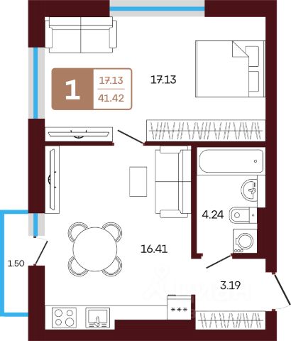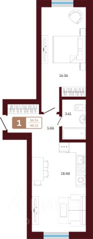 Жилая площадь 25.16 кв. м. от ГК "Первый Трест".