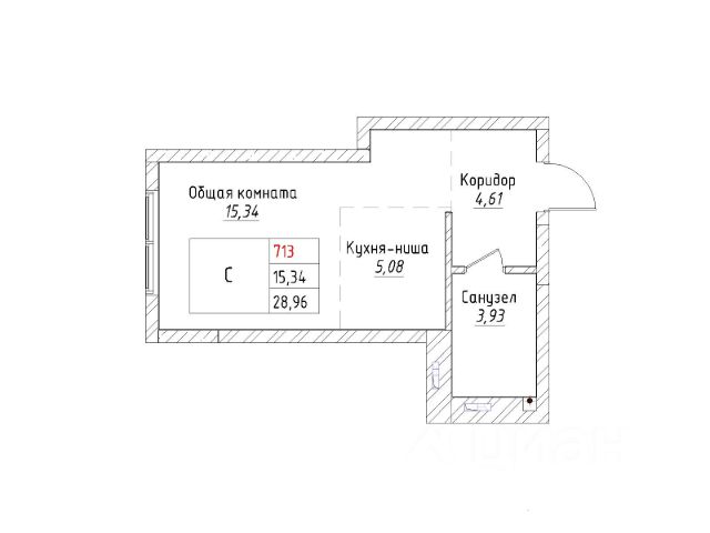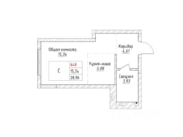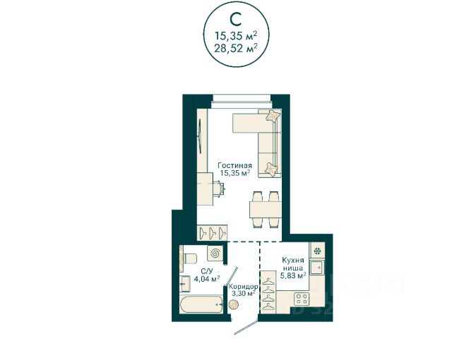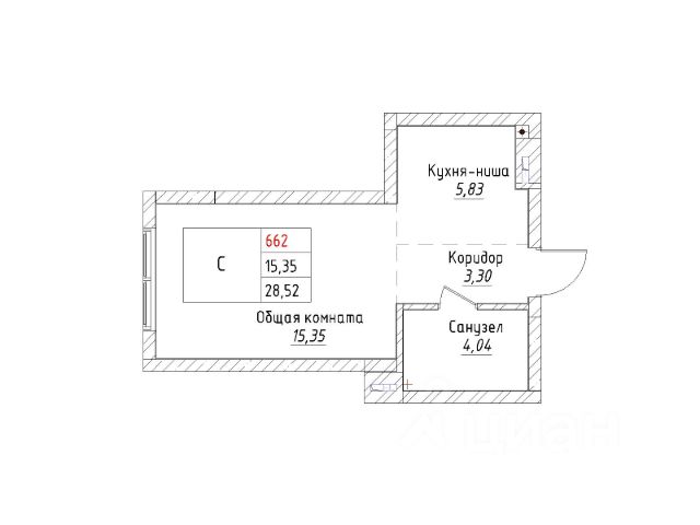 санузел совмещенный — 3,98 кв.м.