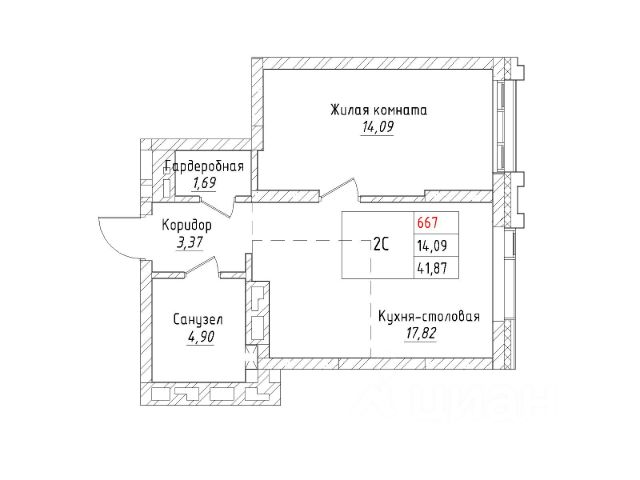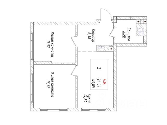 Ваша будущая 2 комнатная квартира 49,89 кв.м. с продуманной планировкой: