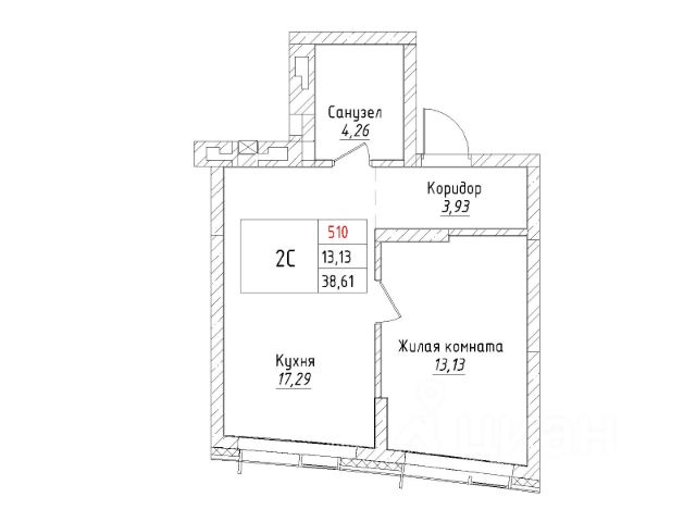 прихожая — 6,38 кв.м.