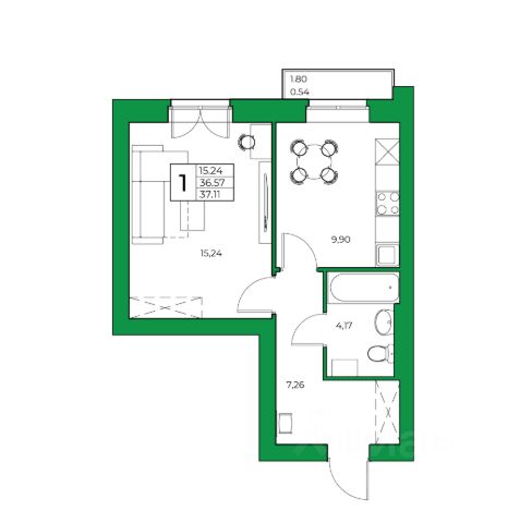 В квартире сделан качественный евроремонт. Просторная кухня площадью 7.6 кв. м оборудована всем необходимым для приготовления пищи. В комнате светло и уютно, окна выходят как на улицу, так и во двор, поэтому в квартире всегда достаточно света. Санузел совмещенный, оформлен современно и удобно. Лоджия, доступная из комнаты, позволяет наслаждаться видом на город и проводить уютные вечера на свежем воздухе.