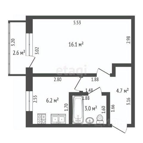 • ✅ Объект наибольшей площади: 46 м²