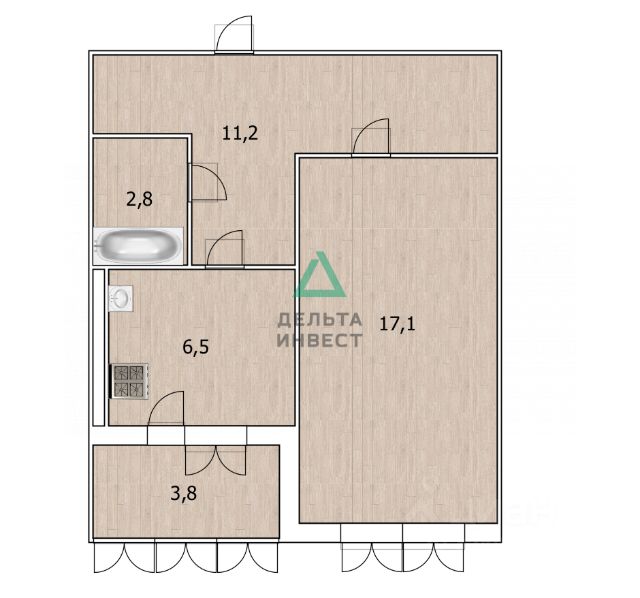 Санузел совмещенный 3,95 кв.м.,
