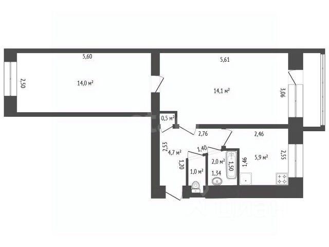 • раздельный санузел: ванная 2,57 м² + туалет 1,49 м² — реально удобно в быту