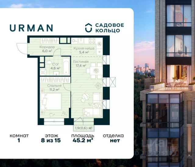 Успейте забронировать по акционной цене! Стоимость квартиры указана со скидкой, ваша выгода составит 469662 рублей. Предложение ограничено. Звоните, чтобы узнать подробнее! Продается квартира в ЖК Urman City с 1 спальней на 23 этаже 30 этажного дома. Общая площадь: 50.91 кв.м. Высота потолков 2.95 м. Срок сдачи 2 квартал 2026 г. Окна выходят на 2 стороны. Вид во двор. Вид на лес. Вид на воду. Угловое остекление. Эскроу-счет. Застройщик ГК "Садовое кольцо". -Расположение Urman расположен прямо в сердце лесного массива. Прогулка по благоустроенным лесным тропам или 10 мин езды до центра города — выбор за вами. Собственная дорога через лес обеспечивает приватность и тишину, защищая от городского шума. -Инфраструктура Urman предлагает разнообразную собственную инфраструктуру: спортивные зоны, детские площадки, кафе и уютные общественные пространства. Планировки квартир продуманы до мелочей, обеспечивая комфорт и функциональность. -Архитектура Неоклассические пропорции, игра стекол и оттенков кирпича, вдохновленная североевропейскими мотивами, создают уникальный облик комплекса. Разновысотные корпуса открывают впечатляющие виды на лес и реку, делая каждый дом по-настоящему особенным. -Внутренний двор Закрытый трехуровневый двор впечатляет гармонией и уютом. Продуманный ландшафт и связь с окружающим лесом создают идеальное пространство для отдыха, прогулок и семейного времяпрепровождения. -Входные группы Входные группы оформлены элегантно и продуманно. Акцентные элементы, ландшафтные композиции и представительская зона в стиле эко-лофт создают эффект "портала" в приватный мир комплекса.