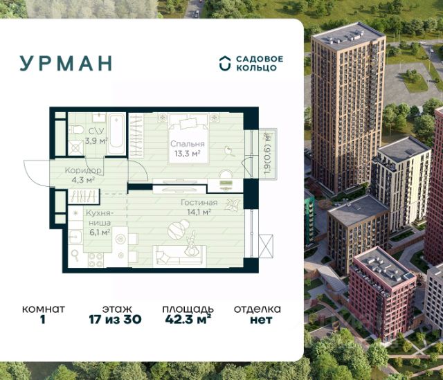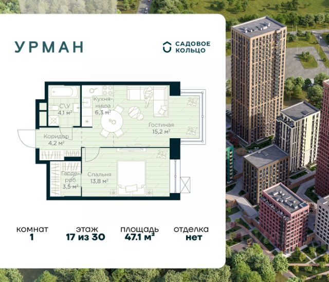 Успейте забронировать по акционной цене! Стоимость квартиры указана со скидкой, ваша выгода составит 493541 рублей. Предложение ограничено. Звоните, чтобы узнать подробнее! Продается квартира в ЖК Urman City с 1 спальней на 9 этаже 10 этажного дома. Общая площадь: 50.3 кв.м. Высота потолков 3.4 м. Срок сдачи 2 квартал 2026 г. Вид во двор. Мастер-спальня. Эскроу-счет. Застройщик ГК "Садовое кольцо". -Расположение Urman расположен прямо в сердце лесного массива. Прогулка по благоустроенным лесным тропам или 10 мин езды до центра города — выбор за вами. Собственная дорога через лес обеспечивает приватность и тишину, защищая от городского шума. -Инфраструктура Urman предлагает разнообразную собственную инфраструктуру: спортивные зоны, детские площадки, кафе и уютные общественные пространства. Планировки квартир продуманы до мелочей, обеспечивая комфорт и функциональность. -Архитектура Неоклассические пропорции, игра стекол и оттенков кирпича, вдохновленная североевропейскими мотивами, создают уникальный облик комплекса. Разновысотные корпуса открывают впечатляющие виды на лес и реку, делая каждый дом по-настоящему особенным. -Внутренний двор Закрытый трехуровневый двор впечатляет гармонией и уютом. Продуманный ландшафт и связь с окружающим лесом создают идеальное пространство для отдыха, прогулок и семейного времяпрепровождения. -Входные группы Входные группы оформлены элегантно и продуманно. Акцентные элементы, ландшафтные композиции и представительская зона в стиле эко-лофт создают эффект "портала" в приватный мир комплекса.