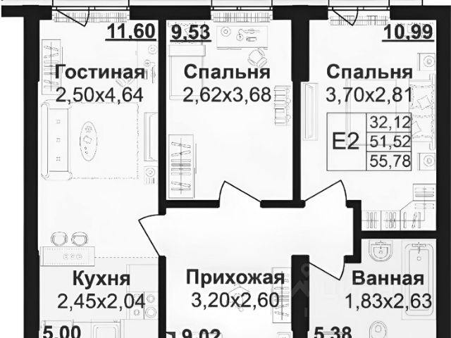 95 928 ₽/м²
