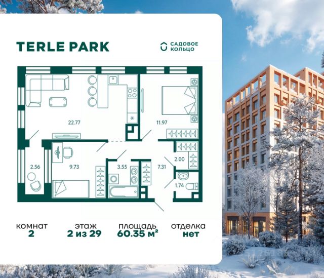 Продается квартира в ЖК Terle Park с 2 спальнями на 7 этаже 16 этажного дома. Общая площадь: 63.31 кв.м. Высота потолков 2.95 м. Срок сдачи 4 квартал 2025 г. Вид на лес. Эскроу-счет. Застройщик ГК "Садовое кольцо". -Расположение Terle Park расположен на улице Авроры, в экологически чистом районе "Зелёная роща", на границе с лесопарком, который огибает река Уфа. Здесь можно наслаждаться чистым воздухом пригородной зоны, оставаясь в городской черте, с быстрым доступом к основным магистралям Уфы и удобной транспортной инфраструктурой. -Инфраструктура Комплекс расположен в шаговой доступности от ключевых образовательных учреждений: детский сад 24, лицей 5, школа 119. Практически через дорогу — станция скорой помощи, кардиологический центр, Республиканская детская больница и Республиканский перинатальный центр, что обеспечивает быстрый доступ к медицинской помощи. -Архитектура Шесть корпусов переменной этажности (от 10 до 29 этажей) гармонично вписываются в природный ландшафт района Зелёной рощи". Каждый корпус имеет индивидуальное оформление, подчеркивающее уникальность и современность комплекса. Дома возводятся по кирпично-монолитной технологии с навесным фасадом, что обеспечивает долговечность и эстетическую привлекательность. -Внутренний двор Внутренняя территория представляет собой уютный парк для жителей, где всё продумано до мелочей. Закрытый двор без машин обеспечивает безопасность и уют. Пространство разделено на различные зоны для отдыха: от прогулочных маршрутов и лаунж-зон, до террас для йоги и медитаций. Для общения и ярких событий будет обустроена событийная площадь. Для любителей спорта на территории предусмотрены воркаут зона, настольный теннис и многофункциональная площадка для игр. -Входные группы Подъезды расположены на уровне земли — удобно для колясок, велосипедов и самокатов. Лобби в светлой палитре с зелёными и оранжевыми акцентами дополняет рабочая зона для встреч и онлайн-конференций. В домах предусмотрены современные бесшумные лифты.