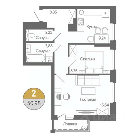 Продаётся 2-комнатная квартира в строящемся доме (Корпус 1), срок сдачи: IV-кв. 2026, общей площадью 50.71 кв.м., на 13 этаже. Жилой комплекс "Дуэт" - дом комфорт-класса. Жилой дом представляет собой четырнадцатиэтажное кирпичное здание П-образной формы, состоящее из четырёх блок-секций. В комплексе представлены квартиры различной площади - от однокомнатных до трёхкомнатных, с тщательно продуманными планировками. В каждом подъезде по два современных бесшумных лифта (пассажирский и грузопассажирский), в которых никогда не тесно - комфортно ехать большой компанией и перевозить крупногабаритные вещи, велосипеды и коляски. В жилом комплексе высокие и прозрачные входные группы, домофон в тёплом тамбуре, понятная навигация на этажах. Возле дома оборудованы автопарковочные места. На техническом этаже расположены кладовые помещения, которые жильцы могут использовать по своему усмотрению. На первых этажах домов будет создана уникальная среда для комфортной жизни. Здесь расположатся пространства для прогулок и отдыха, а также магазины и коммерческие помещения. СЗ "Альянс-Групп", занимаясь строительством многоквартирных жилых комплексов, применяет современные технологии и высококачественные материалы, которые отличаются высокой прочностью и долговечностью. Каждый жилой комплекс разрабатывается с учетом мельчайших деталей: от привлекательного внешнего вида зданий до эргономичных и удобных планировок, а также тщательного благоустройства придомовых территорий и обеспечения безопасности. Продается 2-комнатная квартира на 13 этаже в Стерлитамаке.