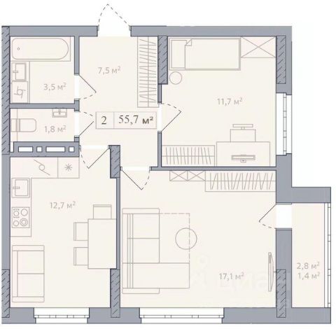 Продаётся 2-комнатная квартира в строящемся доме (Корпус 1), срок сдачи: IV-кв. 2026, общей площадью 49.82 кв.м., на 7 этаже. Жилой комплекс "Дуэт" - дом комфорт-класса. Жилой дом представляет собой четырнадцатиэтажное кирпичное здание П-образной формы, состоящее из четырёх блок-секций. В комплексе представлены квартиры различной площади - от однокомнатных до трёхкомнатных, с тщательно продуманными планировками. В каждом подъезде по два современных бесшумных лифта (пассажирский и грузопассажирский), в которых никогда не тесно - комфортно ехать большой компанией и перевозить крупногабаритные вещи, велосипеды и коляски. В жилом комплексе высокие и прозрачные входные группы, домофон в тёплом тамбуре, понятная навигация на этажах. Возле дома оборудованы автопарковочные места. На техническом этаже расположены кладовые помещения, которые жильцы могут использовать по своему усмотрению. На первых этажах домов будет создана уникальная среда для комфортной жизни. Здесь расположатся пространства для прогулок и отдыха, а также магазины и коммерческие помещения. СЗ "Альянс-Групп", занимаясь строительством многоквартирных жилых комплексов, применяет современные технологии и высококачественные материалы, которые отличаются высокой прочностью и долговечностью. Каждый жилой комплекс разрабатывается с учетом мельчайших деталей: от привлекательного внешнего вида зданий до эргономичных и удобных планировок, а также тщательного благоустройства придомовых территорий и обеспечения безопасности.