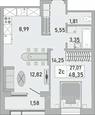 Остаются: Кухонный гарнитур, кондиционер, диван.