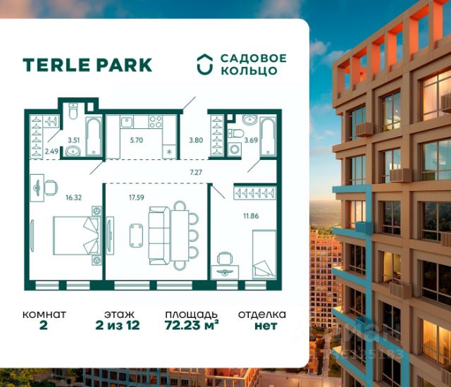 Продается квартира в ЖК Terle Park с 2 спальнями на 2 этаже 18 этажного дома. Общая площадь: 65.85 кв.м. Высота потолков 2.95 м. Срок сдачи 3 квартал 2026 г. Эскроу-счет. Застройщик ГК "Садовое кольцо". Новый современный жилой комплекс Terle Park расположен на улице Авроры — на самом краю лесопарка, который огибает река Уфа. Это настоящий курорт на свежем воздухе: район "Зеленая роща" признан самым экологически чистым в городе. При этом до центра — рукой подать: удобный и быстрый выезд на главные магистрали города — улицу Менделеева и проспект Салавата Юлаева. 6 корпусов класса "Комфорт+" жилого комплекса TERLE PARK расположатся на границе природы и города. Фасады оформлены панелями различных текстур и оттенков: хай-тек материалы преломляют свет, меняя цвета под разными углами зрения. Среди шести домов комфорт-класса есть как высотки в 29 этажей, так и небольшие десятиэтажные дома. Благодаря грамотному планированию этажности, двор будет всегда солнечным, а ветер - останется снаружи. Комфорт проживания максимально учтен и в планировочных решениях квартир, где каждый метр функционален. Евро-форматы, квартиры с мастер-спальнями, террасы и многое другое уже ждет вас в сказочном ЖК. Все продумано до мелочей, квартиры полностью соответствует вашим желаниям и потребностям. Виды из окон в сторону леса и реки — вашими соседями станут тишина и свежий воздух. Сочетание пригородного спокойствия и принципов жизни в большом городе. На территории ЖК есть все элементы инфраструктуры, необходимые современному человеку: - Благоустроенный двор с концепцией "Городской парк", - Закрытая и безопасная территория: двор без машин и посторонних людей, - Современные лобби с консьержами. Двухуровневый подземный паркинг с удобным доступом на лифте прямо от квартиры, въезд только для жителей, круглосуточное видеонаблюдение.