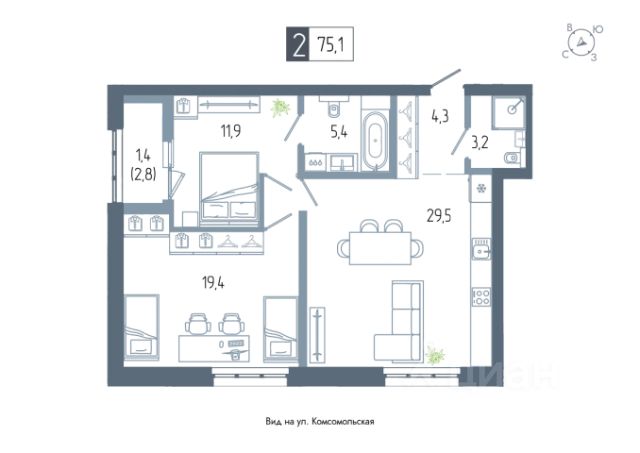 Продаётся 2-комнатная квартира в строящемся доме (дом 1), срок сдачи: III-кв. 2026, общей площадью 69.1 кв.м., на 4 этаже. Новый жилой комплекс "АУРУМ" от застройщика "СтроиТЭК" расположен по адресу Республика Башкортостан, Уфа, Комсомольская улица.