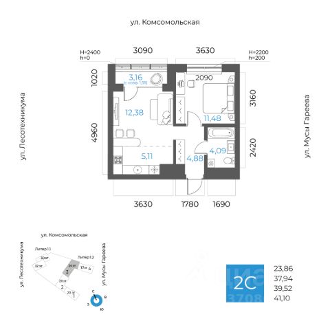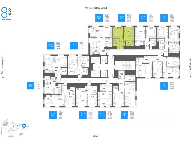 2-к квартира в 8 НЕБО; По адресу: ул. Лесотехникума Литер 1, Секция 1. 25-й этаж 32- этажного жилого дома Общая площадь 35.48кв.м.; Жилая площадь 22.00 кв. м. от ГК "Первый Трест". Срок окончания строительства: 3 квартал 2027 года. Квартира с свободной планировкой, позволяющей реализовать любые дизайнерские решения: - Стены выровнены и оштукатурены, готовые под финишную отделку по вашему вкусу. - Пол: выполнена стяжка, обеспечивающая ровное основание для любых напольных покрытий. - Электрика: разводка выполнена до щитка, что обеспечивает безопасность и удобство при дальнейшем монтаже. - Отопление: установлены радиаторы и выполнена полная разводка системы отопления. - Водоснабжение: выведены коммуникации под воду, готовые для установки сантехнического оборудования. ЖК 8 Небо - это восемь домов в самом современном районе столицы. Вы попадаете в уютное, но при этом динамичное пространство, открытое солнечным лучам. Здесь вы найдете для счастья всё, вне зависимости от того, что вкладываете в это понятие. - Счастье, когда всё рядом. Открытая прогулочная улица на территории комплекса, крупнейший торговый центр в 10 минутах ходьбы, прямой доступ к ключевым транспортным магистралям города - Счастье в эстетике. 8 разновысотных зданий, созданных при участии шведских архитекторов. - Счастье в красоте, функциональности и безопасности. Просторные дизайнерские холлы с уникальным дизайном для - Счастье в благоустроенной территории. Многоярусный внутренний двор с разнообразными зонами озеленения и общественными пространствами. - Счастье жить с единомышленниками. Соседский центр - уютное пространство для отдыха и площадка для воплощения идей, доступ к которой будет у всех жителей комплекса. Архитектура ЖК 8 Небо создан при участии шведских архитекторов, которые привнесли в проект элементы скандинавской культуры. Разновысотные здания выполнены из экологически-безопасных материалов. Базовая отделка фасадов: декоративная плитка с имитацией кирпича, фиброцементные панели и витражи из алюминиевого сплава. Всё это соответствует скандинавскому стилю, сочетая минимализм и эстетику. Паркинг Жилой комплекс оборудован просторным и безопасным подземным паркингом с системой бесконтактного доступа по номеру автомобиля. Изнутри же попасть в него можно просто спустившись на лифте с любого этажа. Благоустройство Открытый квартал для прогулок наполнит район необходимыми элементами приятной и комфортной жизни: эстетичные арт-объекты, облагороженная зона отдыха, магазины, рестораны, студии развития и творчества, салоны красоты. А закрытая территория, доступная только владельцам квартир жилого комплекса и их гостям, обеспечит уединение и безопасность. Весело и с пользой провести время теперь можно не выходя за пределы своего жилого комплекса. Инфраструктура в радиусе километра Школы - Собственная школа на территории комплекса - МАОУ Школа 88 - Школа 97 им. Г.А. Ахмерова - Лицей 6 им. Сафина Н.Д. - Лицей 42 -