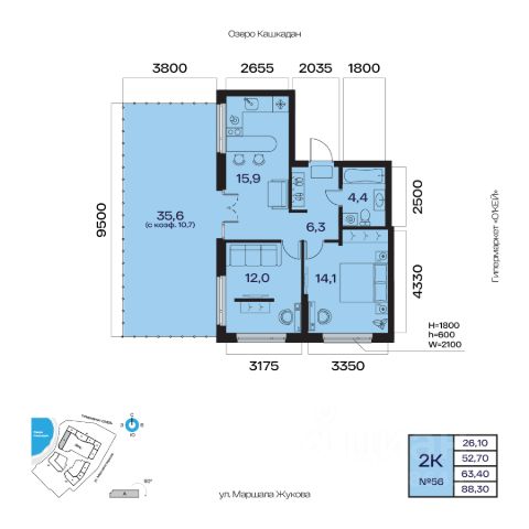 2-к квартира в АТЛАНТИС; По адресу: ул. Маршала Жукова Литер 1, Секция 5. 2-й этаж 32- этажного жилого дома Общая площадь 60.10кв.м.; Жилая площадь 26.60 кв. м. от ГК "Первый Трест". Срок окончания строительства: 4 квартал 2027 года. Квартира с свободной планировкой, позволяющей реализовать любые дизайнерские решения: - Стены выровнены и оштукатурены, готовые под финишную отделку по вашему вкусу. - Пол: выполнена стяжка, обеспечивающая ровное основание для любых напольных покрытий. - Электрика: разводка выполнена до щитка, что обеспечивает безопасность и удобство при дальнейшем монтаже. - Отопление: установлены радиаторы и выполнена полная разводка системы отопления. - Водоснабжение: выведены коммуникации под воду, готовые для установки сантехнического оборудования. Жилой комплекс Атлантис расположен в непосредственной близости от живописного озера Кашкадан. Из окон открываются уникальные виды на парк, водную гладь и панораму города. Прогулки по набережной, занятия спортом на открытом воздухе и множество других активностей станут приятным дополнением удобной локации. Многоуровневое благоустройство Первый ярус - открытая территория, двор-сад с фонтаном; окружённый арт-объектами и элементами ландшафтного дизайна. Место, где благоустройство жилого комплекса бесшовно соединяется с природой парка Кашкадан. Второй - частное пространство для отдыха жильцов с концептуальными детскими и спортивными зонами. Наслаждайтесь видами на озеро со смотровой площадки и прогулками среди зелёных композиций. Архитектура Внешний вид жилого комплекса вдохновлён легендой, но при этом является современным и инновационным. Шесть видовых башен и секции переменной этажности обеспечивают оптимальный приток естественного света и открывают великолепный вид на озеро и парк. Внутренние дворы каждой очереди соединены мостом-кольцом, связывающим всю архитектурную композицию воедино. Выбирайте комфортную высоту и площадь для жизни Множество планировок, соответствующих стандартам современного бизнес-класса: - Квартиры с мастер-спальнями и гостевыми санузлами. - Крупноформатные окна с роскошными видами. - Просторные прихожие и кухни-гостиные. - Террасы с видом на озеро и парк. - Удобные гардеробные. - Двухуровневые квартиры. Инфраструктура в пешей доступности Продукты - 15 Здоровье - 19 Кафе и рестораны - 8 Детские сады - 6 Образование - 10 Спорт - 11 Шоппинг - 17 Красота и уход - 19 Культура и досуг - 12 Мы предлагаем различные варианты покупки квартир в нашем жилом комплексе:- Оплата наличными - Рассрочка до 24 мес. - Семейная ипотека от 5,2% - Льготная ипотека для программистов - Базовая ипотека от 18,7% - Ипотека от 20 ведущих банков: наши специалисты помогут подобрать оптимальную программу кредитования. - Использование материнского капитала - Программа трейд-ин: Бесплатно поможем продать вашу старую квартиру и подобрать новую в нашем комплексе! Свяжитесь с нами, чтобы узнать по