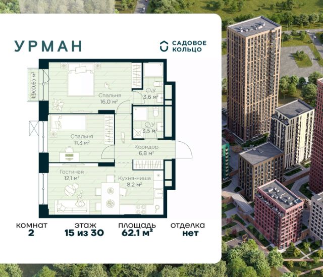 Продается квартира в ЖК Urman City с 2 спальнями на 7 этаже 10 этажного дома. Общая площадь: 56 кв.м. Высота потолков 2.95 м. Срок сдачи 1 квартал 2028 г. Эскроу-счет. Застройщик ГК "Садовое кольцо". -Расположение Urman расположен прямо в сердце лесного массива. Прогулка по благоустроенным лесным тропам или 10 мин езды до центра города — выбор за вами. Собственная дорога через лес обеспечивает приватность и тишину, защищая от городского шума. -Инфраструктура Urman предлагает разнообразную собственную инфраструктуру: спортивные зоны, детские площадки, кафе и уютные общественные пространства. Планировки квартир продуманы до мелочей, обеспечивая комфорт и функциональность. -Архитектура Неоклассические пропорции, игра стекол и оттенков кирпича, вдохновленная североевропейскими мотивами, создают уникальный облик комплекса. Разновысотные корпуса открывают впечатляющие виды на лес и реку, делая каждый дом по-настоящему особенным. -Внутренний двор Закрытый трехуровневый двор впечатляет гармонией и уютом. Продуманный ландшафт и связь с окружающим лесом создают идеальное пространство для отдыха, прогулок и семейного времяпрепровождения. -Входные группы Входные группы оформлены элегантно и продуманно. Акцентные элементы, ландшафтные композиции и представительская зона в стиле эко-лофт создают эффект "портала" в приватный мир комплекса.