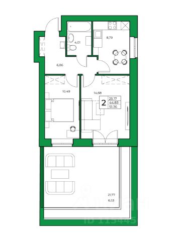 Жилая площадь - 31,1 м2