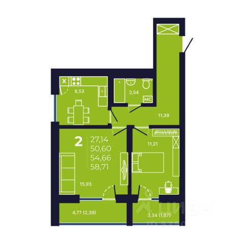 • ✅ Минимальная площадь: 52,3 м²