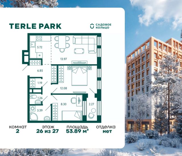 Продается квартира в ЖК Terle Park с 2 спальнями на 26 этаже 27 этажного дома. Общая площадь: 53.89 кв.м. Высота потолков 2.95 м. Срок сдачи 4 квартал 2025 г. Вид на лес. Вид на реку. С отделкой White box. Эскроу-счет. Застройщик ГК "Садовое кольцо". -Расположение Terle Park расположен на улице Авроры, в экологически чистом районе "Зелёная роща", на границе с лесопарком, который огибает река Уфа. Здесь можно наслаждаться чистым воздухом пригородной зоны, оставаясь в городской черте, с быстрым доступом к основным магистралям Уфы и удобной транспортной инфраструктурой. -Инфраструктура Комплекс расположен в шаговой доступности от ключевых образовательных учреждений: детский сад 24, лицей 5, школа 119. Практически через дорогу — станция скорой помощи, кардиологический центр, Республиканская детская больница и Республиканский перинатальный центр, что обеспечивает быстрый доступ к медицинской помощи. -Архитектура Шесть корпусов переменной этажности (от 10 до 29 этажей) гармонично вписываются в природный ландшафт района Зелёной рощи". Каждый корпус имеет индивидуальное оформление, подчеркивающее уникальность и современность комплекса. Дома возводятся по кирпично-монолитной технологии с навесным фасадом, что обеспечивает долговечность и эстетическую привлекательность. -Внутренний двор Внутренняя территория представляет собой уютный парк для жителей, где всё продумано до мелочей. Закрытый двор без машин обеспечивает безопасность и уют. Пространство разделено на различные зоны для отдыха: от прогулочных маршрутов и лаунж-зон, до террас для йоги и медитаций. Для общения и ярких событий будет обустроена событийная площадь. Для любителей спорта на территории предусмотрены воркаут зона, настольный теннис и многофункциональная площадка для игр. -Входные группы Подъезды расположены на уровне земли — удобно для колясок, велосипедов и самокатов. Лобби в светлой палитре с зелёными и оранжевыми акцентами дополняет рабочая зона для встреч и онлайн-конференций. В домах предусмотрены современные бесшумные лифты. Продается 2-комнатная квартира в новостройке с отделкой в районе Кировский в городе Уфа.