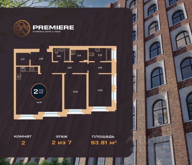 Продается 2-к-комнатная квартира в ЖК Зорге. Премьер от ГК "Жилстройинвест". 2-й этаж 8-этажного жилого дома, общая площадь 93.81 кв.м., жилая площадь 26.58 кв.м.