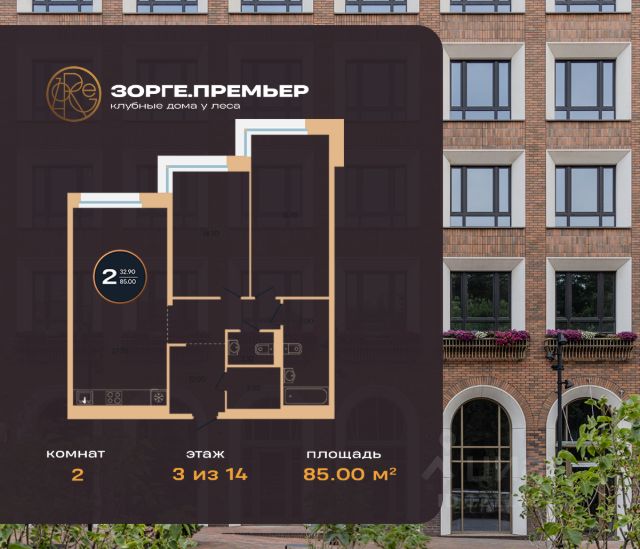 Продается 2-к-комнатная квартира в ЖК Зорге. Премьер от ГК "Жилстройинвест". 3-й этаж 15-этажного жилого дома, общая площадь 85 кв.м., жилая площадь 32.9 кв.м.