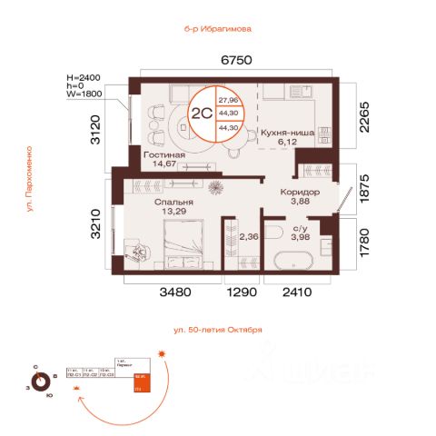 Жилая площадь 25.62 кв. м. от ГК "Первый Трест".