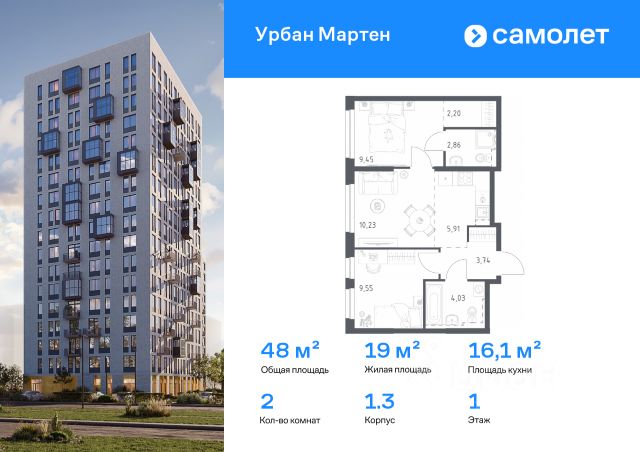 Строим кварталы для жизни с заботой о будущем. Предлагается 2-комнатная квартира комфорт-класса 47,97 кв.м в корпусе 1.3 на 1 этаже, в ЖК "Урбан Мартен" Квартира с предчистовой отделкой. Доступность дополнительных опций уточняйте у застройщика. Приобрести квартиру возможно по специальным акциям от застройщика, с текущими условиями акций можно ознакомиться в блоке "Акций". Цена динамическая и может отличаться, уточняйте актуальность у застройщика. В жилом комплексе "Урбан Мартен" у вас будет собственная Уфа: домашняя, неторопливая, теплая. Здесь дети будут играть во дворе без машин в догонялки, собака сможет бегать за палкой по пляжу, а с соседями получится встречаться не только у лифта, но и на утренних занятиях йогой на зеленой лужайке рядом с домом. Жилой комплекс "Урбан Мартен" находится в Демском районе — самом тихом и зеленом в Уфе. Здесь можно открывать окна нараспашку, чтобы квартира наполнялась свежим воздухом, и наблюдать с балкона, как покачиваются макушки деревьев.