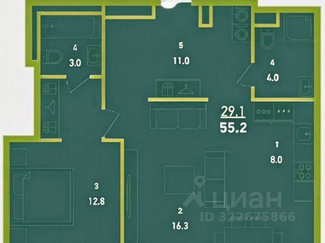 • Двухкомнатная квартира для семьи или молодых людей 59,4 м • Два санузла 4,2 м и 1, 7 м • Функциональный холл 10 м с возможностью обустроить шкаф-купе по периметру или мини-гардеробную • Спальня 12,5 м • Светлая детская 11,4 м • Кухня-гостиная 18 м с выходом на балкон, который можно обустроить под кабинет или приватную зону отдыха