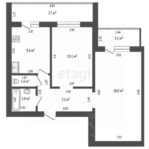• ✅ Объект наибольшей площади: 55,6 м²