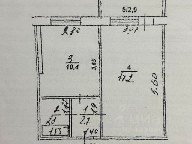 Общая площадь квартиры 60 кв.м.