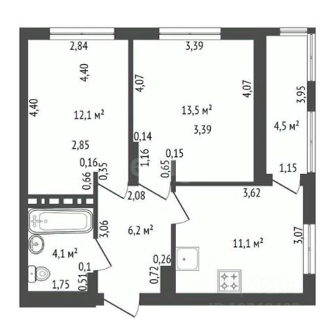 Общая площадь 51,5 кв.м.