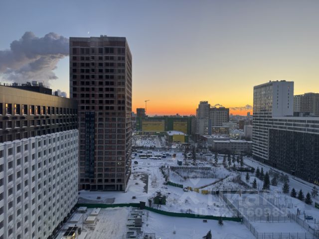 Основная комната. 16,2 кв.м. Зонирование комнаты с помощью штор - отличное решение для эргономики пространства. Чилл-зона: диван с телевизором. Вторая часть комнаты была предусмотрена спальня+рабочий стол вдоль окна с шикарным видом на город. Кровать продали. Есть кондиционер.